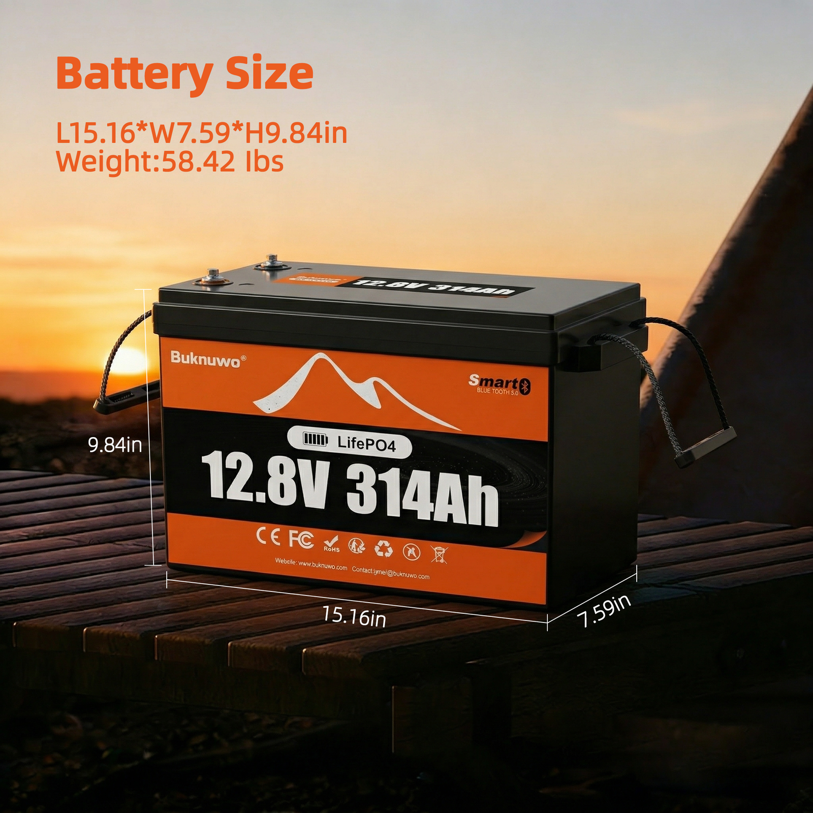 Step into the future of energy independence with the Buknuwo 12.8V 314Ah LiFePO4 Lithium Battery. Engineered for those who demand the absolute maximum from their power systems, this flagship battery delivers a staggering 4019Wh of usable energy. It is the definitive solution for large-scale solar arrays, extended boondocking in your RV, and robust home emergency backup systems.