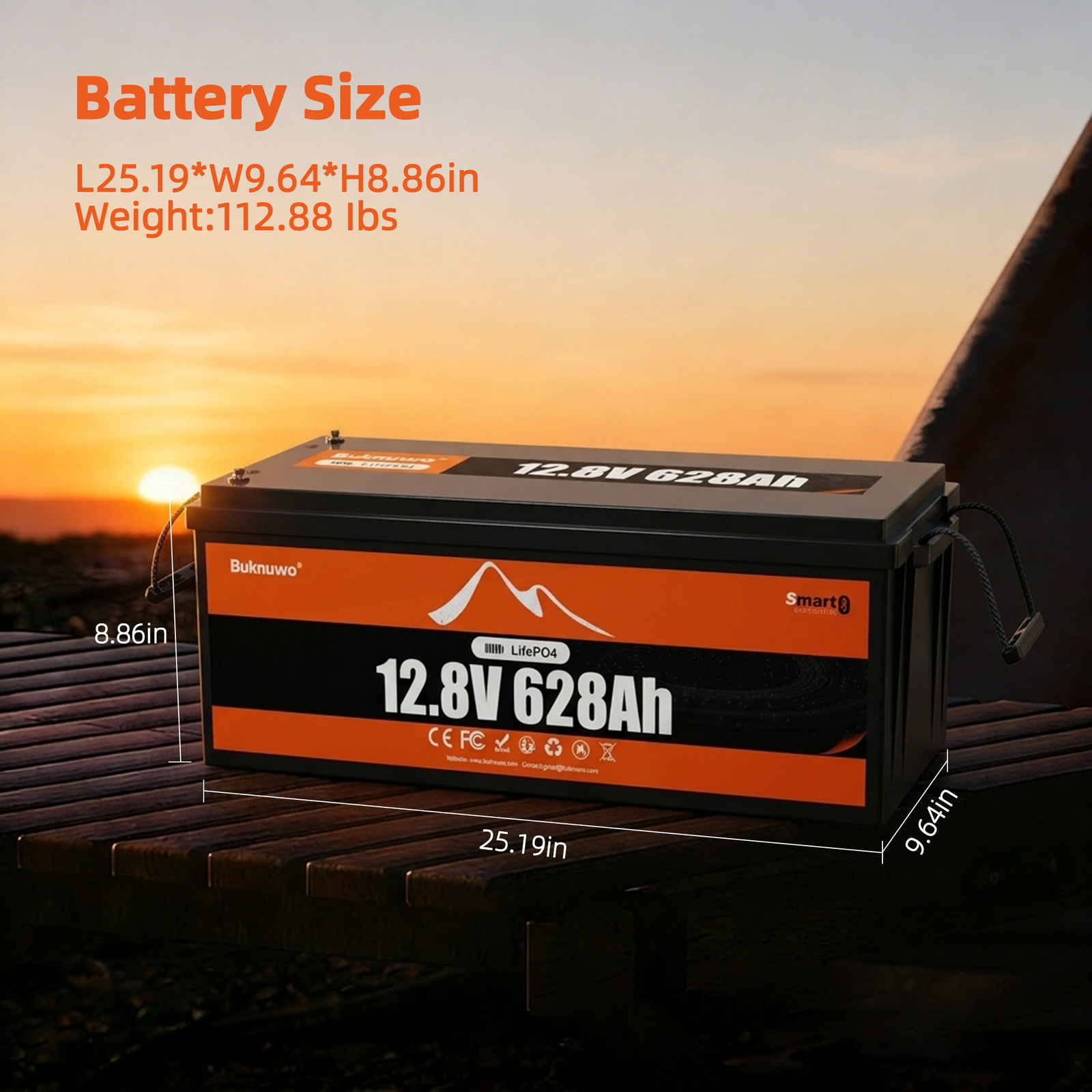 Welcome to the pinnacle of lithium energy storage. The Buknuwo 12.8V 628Ah LiFePO4 Lithium Battery is engineered for those who refuse to compromise. Boasting a colossal 8038Wh of usable energy, this flagship battery provides days—or even weeks—of reliable power for your off-grid cabin, Class A motorhome, or luxury yacht without ever needing a generator.