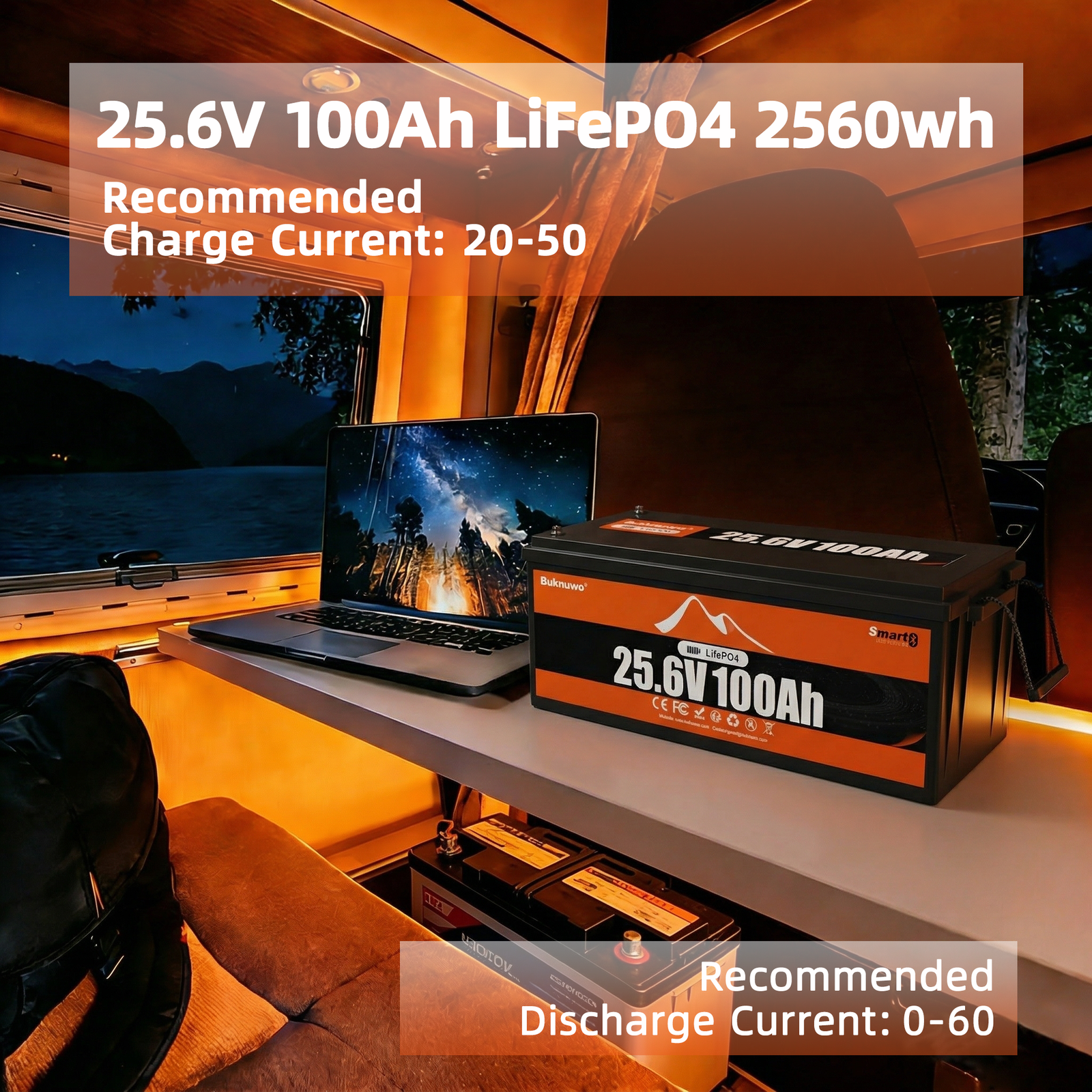 Elevate your power system with the Buknuwo 25.6V 100Ah LiFePO4 Lithium Battery. Designed specifically for modern 24V applications, this advanced energy solution delivers a robust 2560Wh of usable power. Whether you are running a heavy-duty 24V trolling motor, outfitting a large catamaran, or building a highly efficient off-grid solar array, this battery provides superior performance with significantly less energy loss than traditional 12V setups.